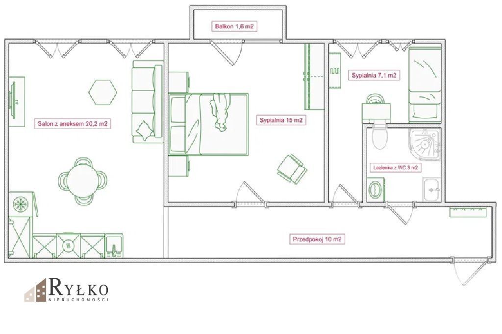 • przestronny salon z aneksem kuchennym (20 m²)